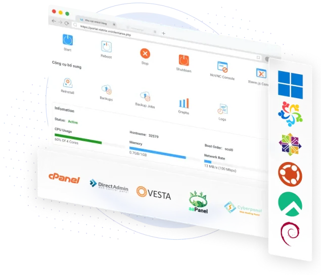 VPS Giá Rẻ tại vuahost tương thích mượt mà với mọi hệ điều hành và Control Panel phổ biến.